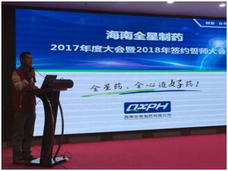 海南全星制藥2017年度大會(huì)暨2018年簽約誓師大會(huì)圓滿結(jié)束2017年12月25-28日,海南全星制藥有限公司于??谟兰未缶频暾匍_了2017年度大會(huì)暨2018年簽約誓師大會(huì)。大會(huì)以“新起點(diǎn)·轉(zhuǎn)型·創(chuàng)新·合規(guī)”為主題,總結(jié)2017年銷售工作及存在問題,并對(duì)2018年做出了詳盡的銷售工作計(jì)劃。會(huì)議在暖場(chǎng)片及參會(huì)人員熱烈的掌聲中拉開帷幕。