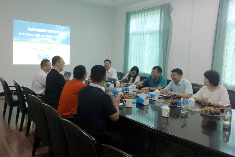 2018年07月25日,九州通醫(yī)藥集團(tuán)董事長劉樹林先生一行蒞臨海南全星制藥有限公司調(diào)研并指導(dǎo)工作。全星制藥董事長劉全勝先生攜公司領(lǐng)導(dǎo)班子一同參加了座談會,并對劉樹林先生一行的到來表示熱烈的歡迎。雙方就企業(yè)的發(fā)展愿景及醫(yī)藥行業(yè)的發(fā)展前景展開了討論。